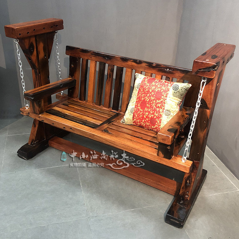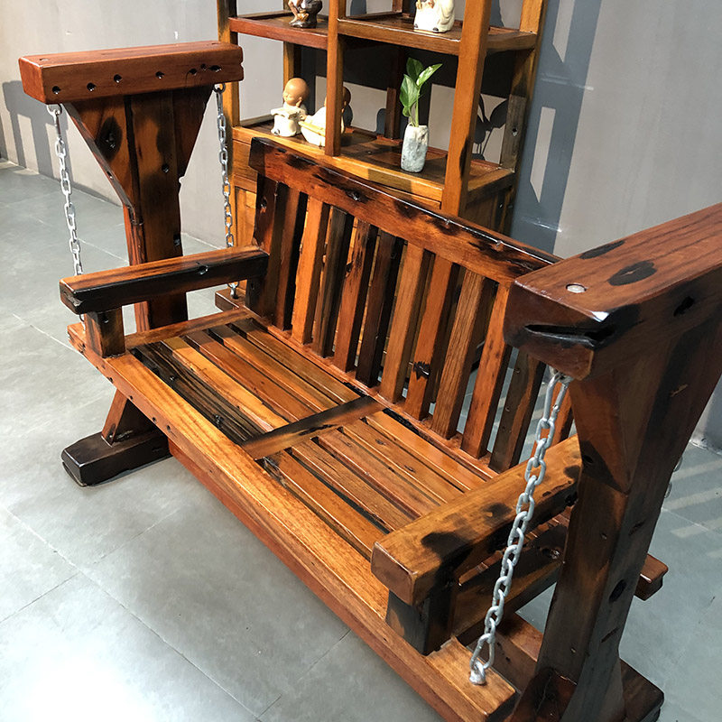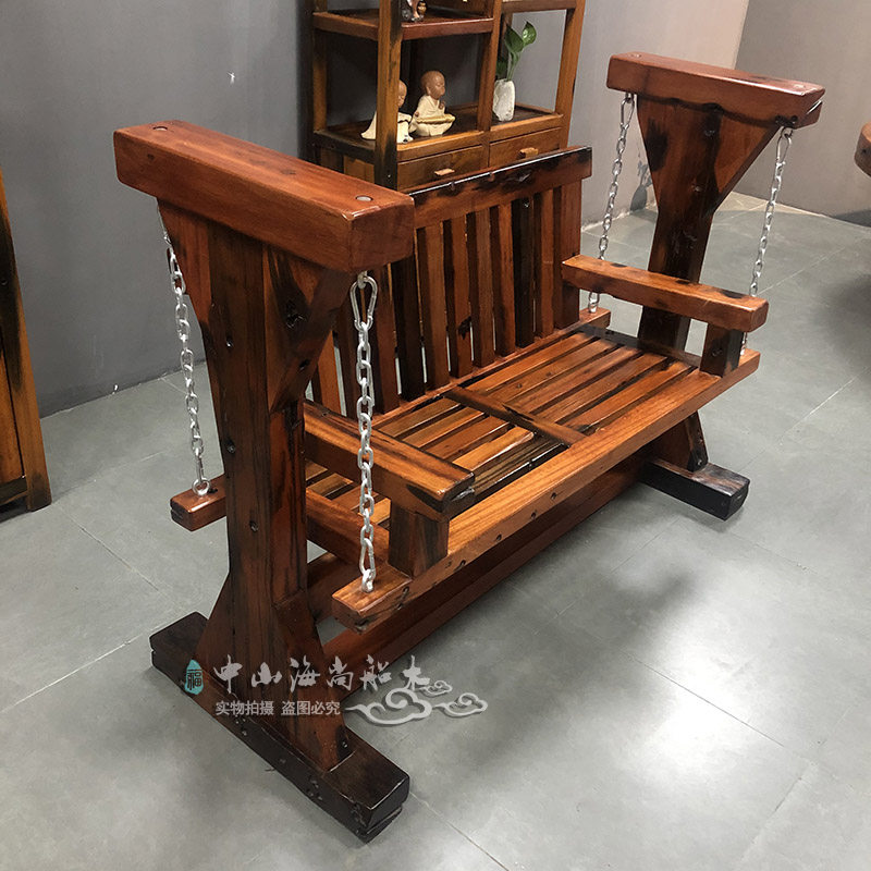Old boat wood Wooden Swing Set balcony Home Hanging Chair Embalming Wood Park Casual Double Chair Patio Outdoor Solid Wood Rocking Chair