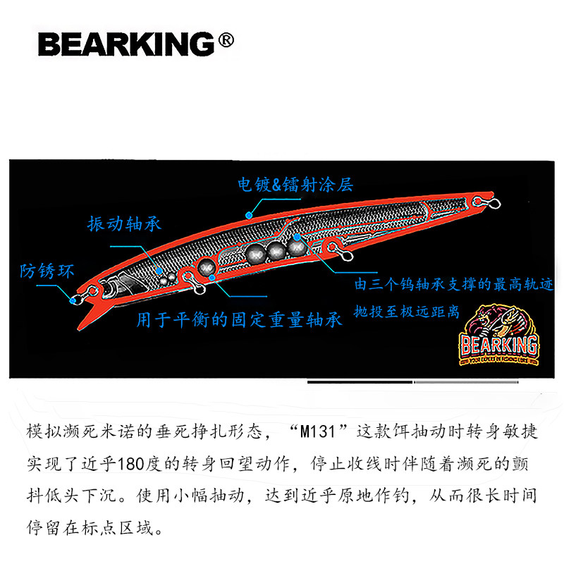 Bear King Luya bait flower colorful floating water 14cm22g Mino fake bait bass perch mouth through killing wild fishing long-range freshwater