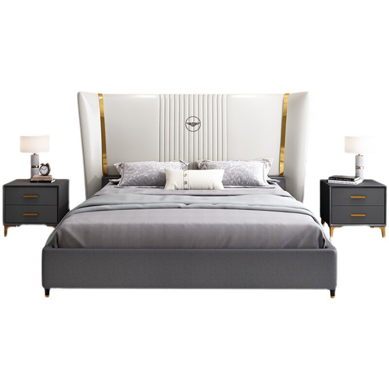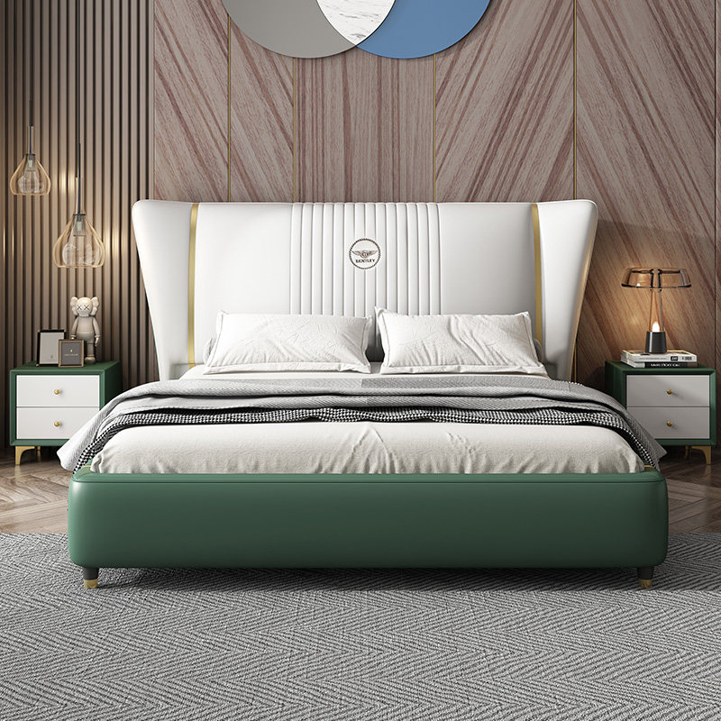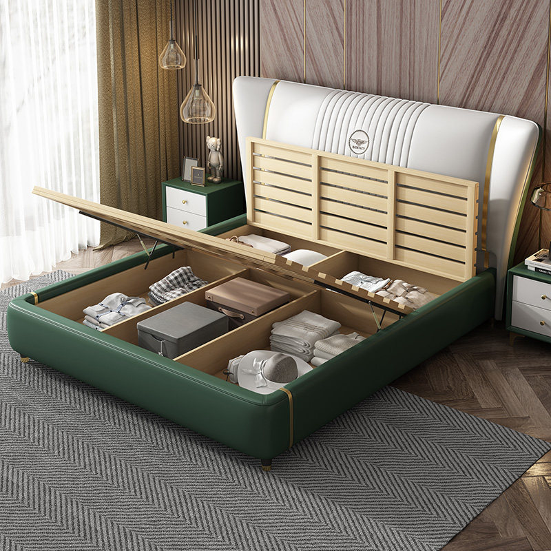 Italian light luxury leather bed modern and simple 2021 new tatami high box storage bed soft bag nappa leather bed