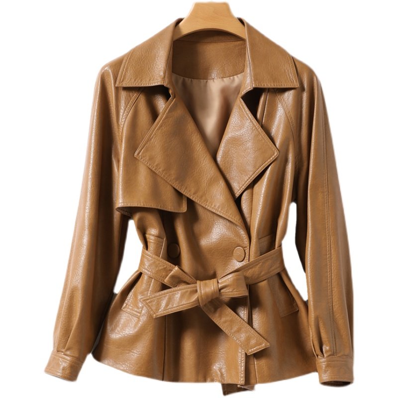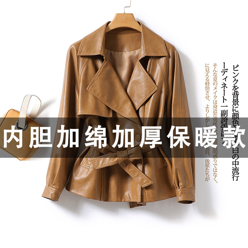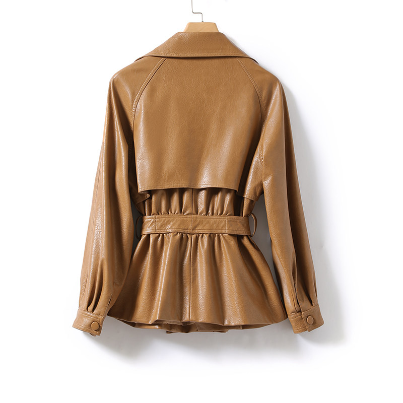 Leather women's short lace-up waist Haining women's leather 2021 autumn and winter new Korean temperament women's coat sheep leather
