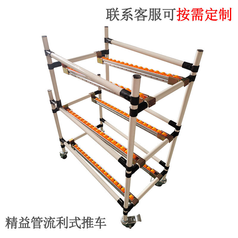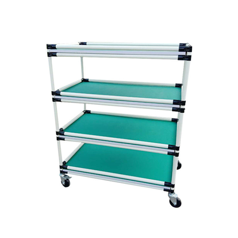 Custom anti-static lean tube material turnover car fluent shelf trolley aluminum profile wire rod shelf caster
