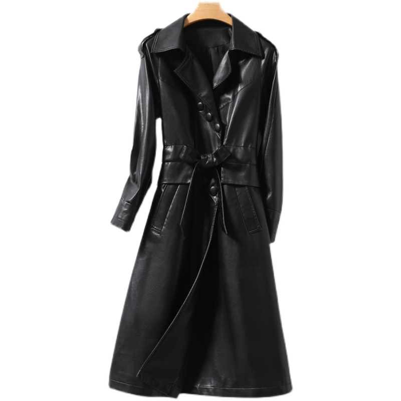 Leather windsuit woman medium long version black lacing sea Ning jacket 2022 genuine leather woman anti-season temperament sheep leather girl leather clothing