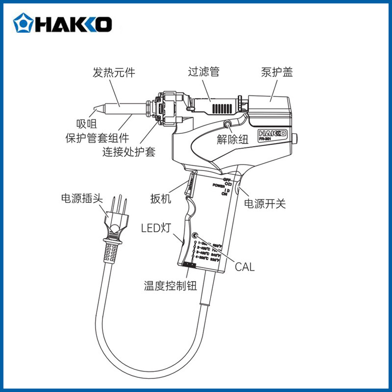 HAKKO tin suction gun FR-301 imported electric powerful anti-static FR300 Japanese white light desoldering artifact