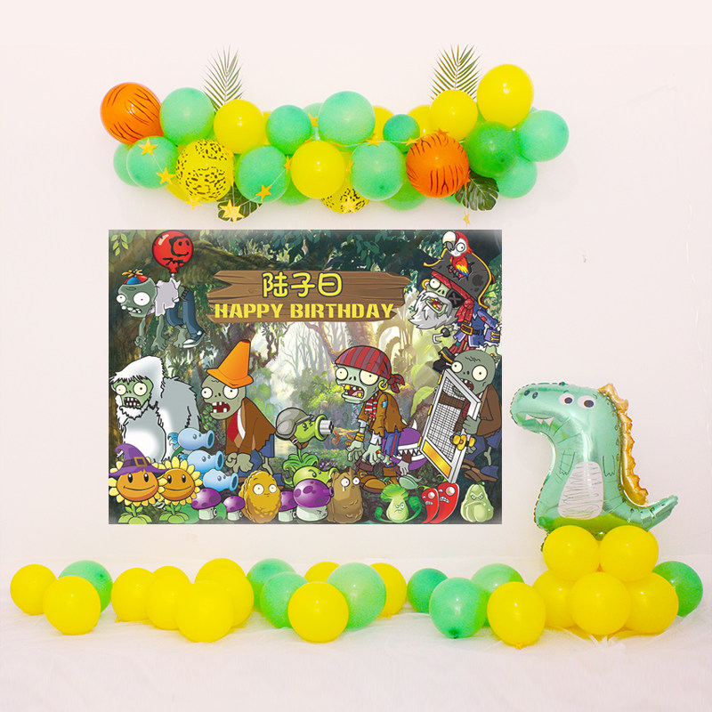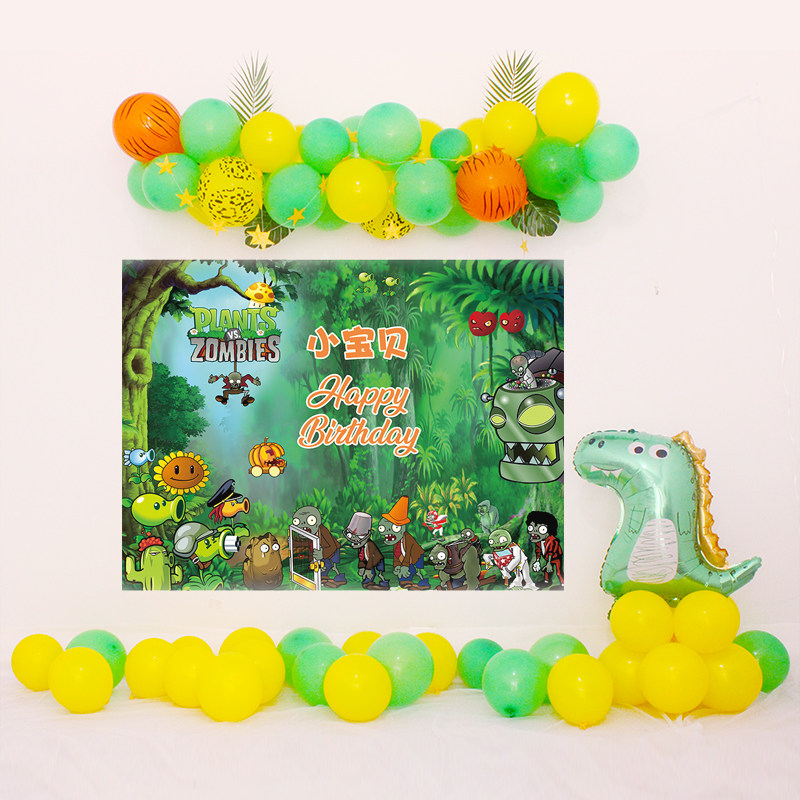 Plant Wars Corpse Background Wall Poster Child Birthday Party Placement Boy 1 Year Old Decorative Scene Balloon