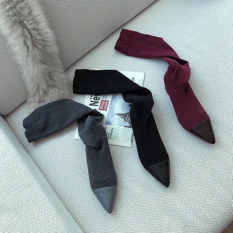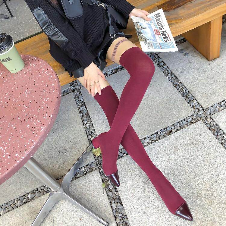 Red - sock boots tip leather over knee boots in 2023 spring - fall elastic thin knit socks boots