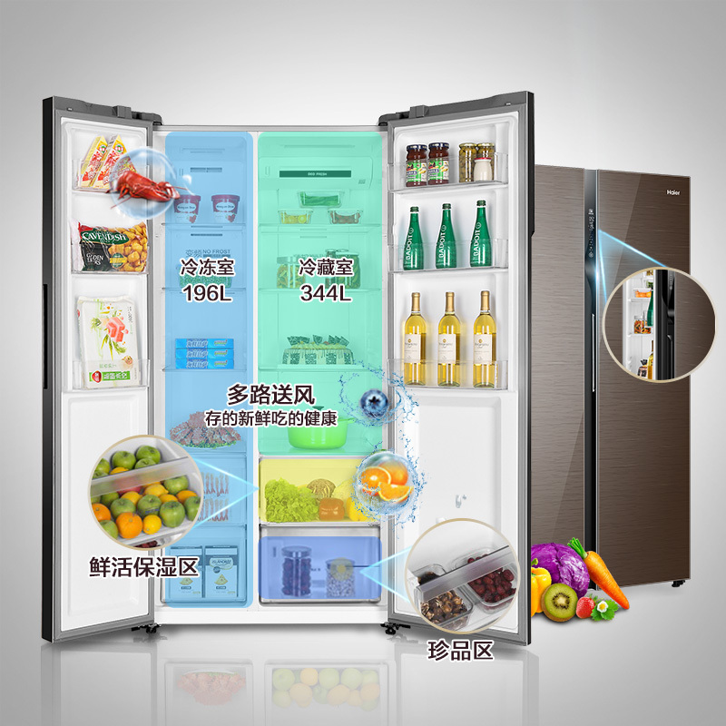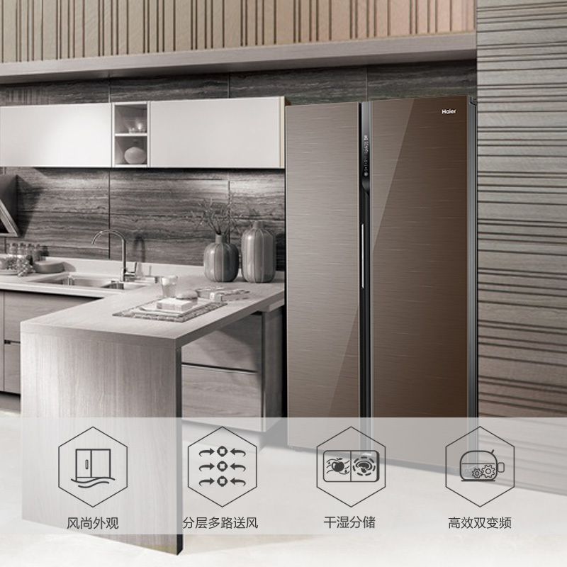 Haier Haier BCD-540WFGR Frequency Conversion Air-cooled Frost-free Color Crystal Glass Slim Pair Open Door Refrigerator