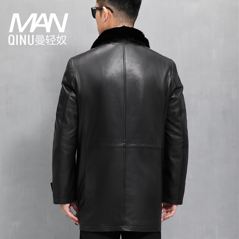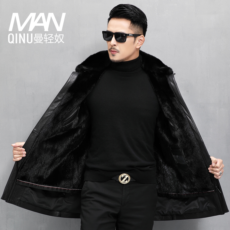 Haining leather jacket men's whole mink mink liner head layer cowhide mid-length fur one jacket fur coat