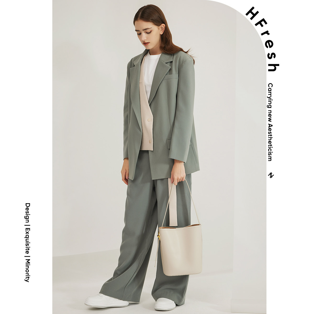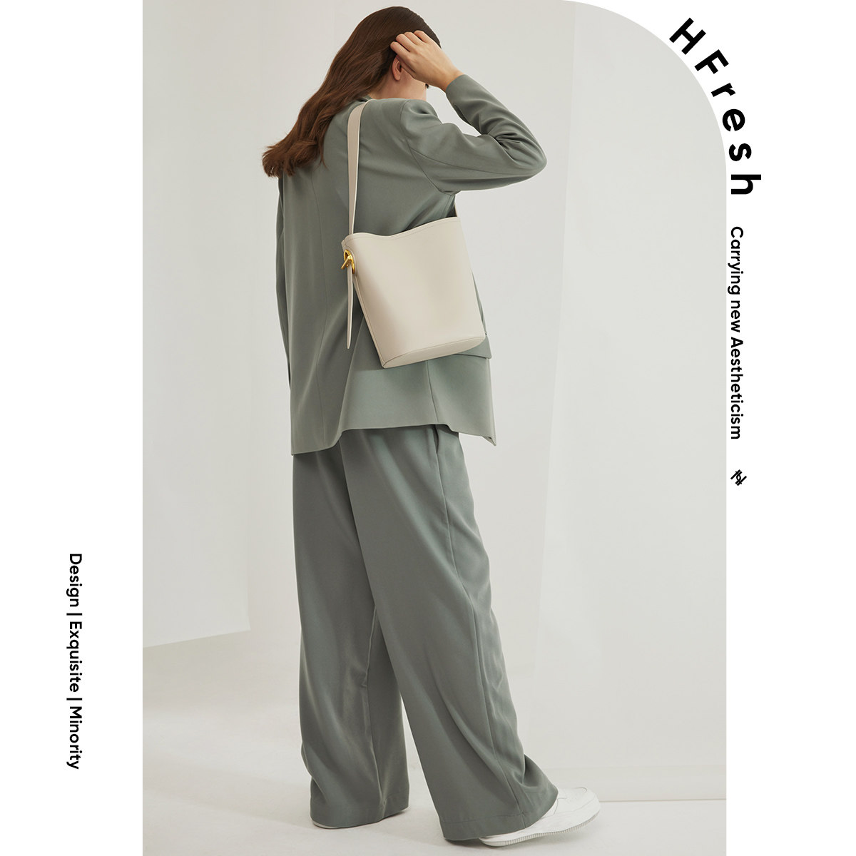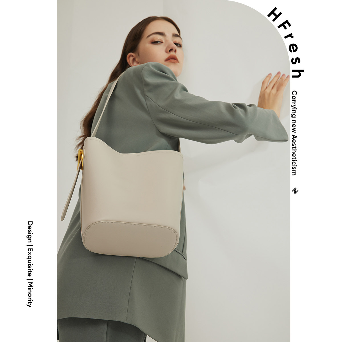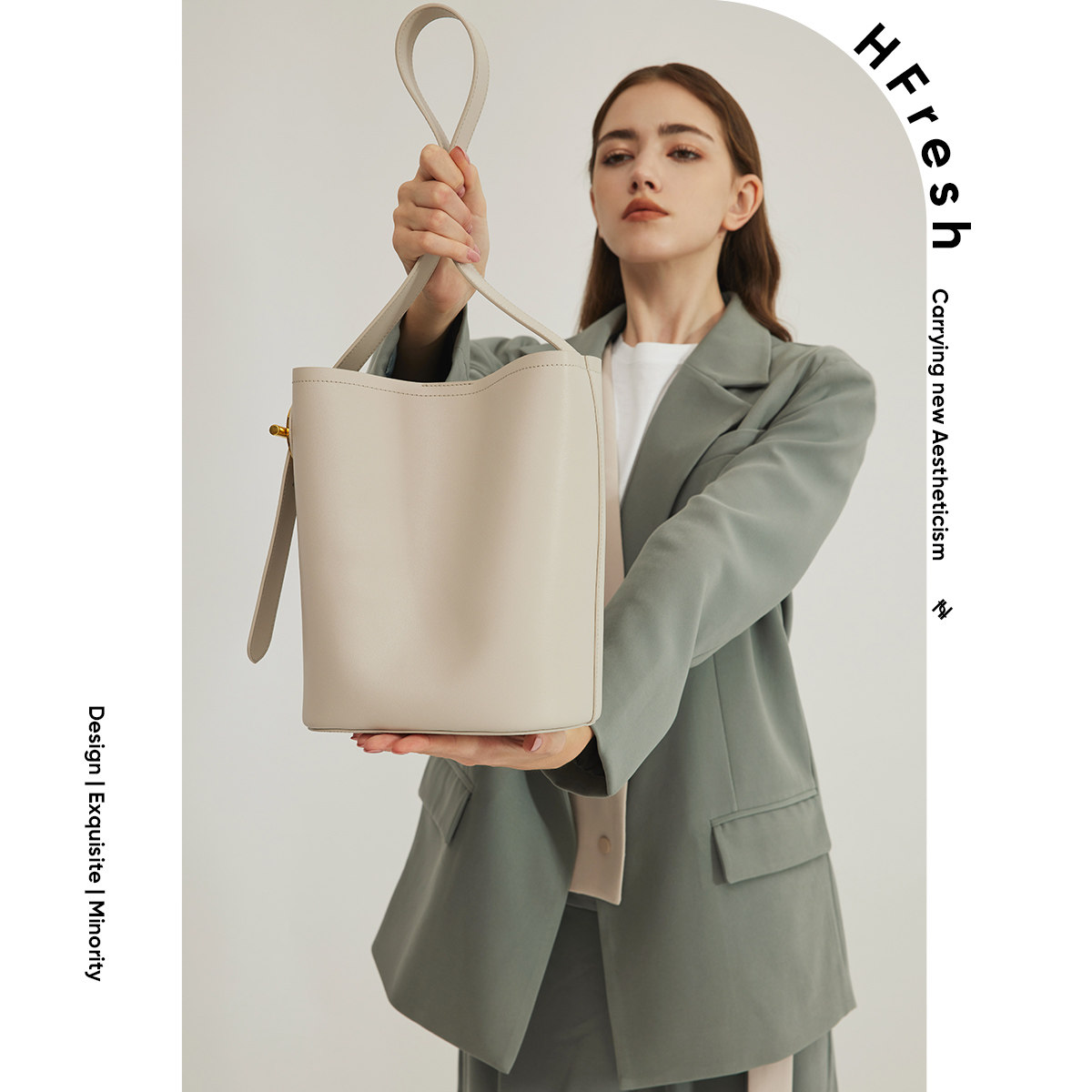 HFresh large-capacity bucket bag leather shoulder commuter bag brown women's bag new 2021 autumn and winter tote bag