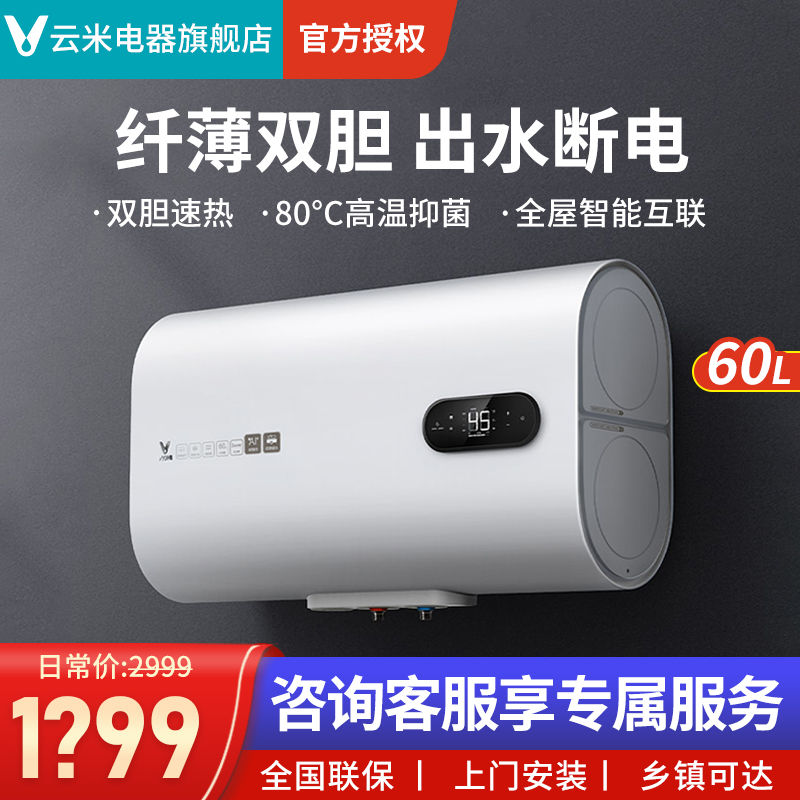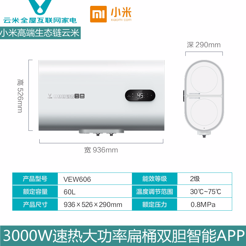Xiaomi has a product ecological chain Yunmi VEW606 smart household flat bucket water storage type double-bile electric water heater 60L liters