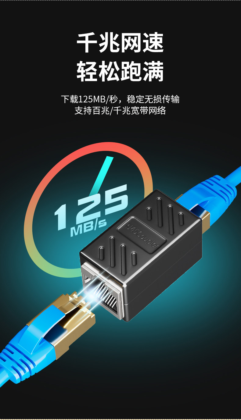 Hundred-cable network cable connector pair connector rj45 double-pass head computer extension network straight-through crystal interface conversion