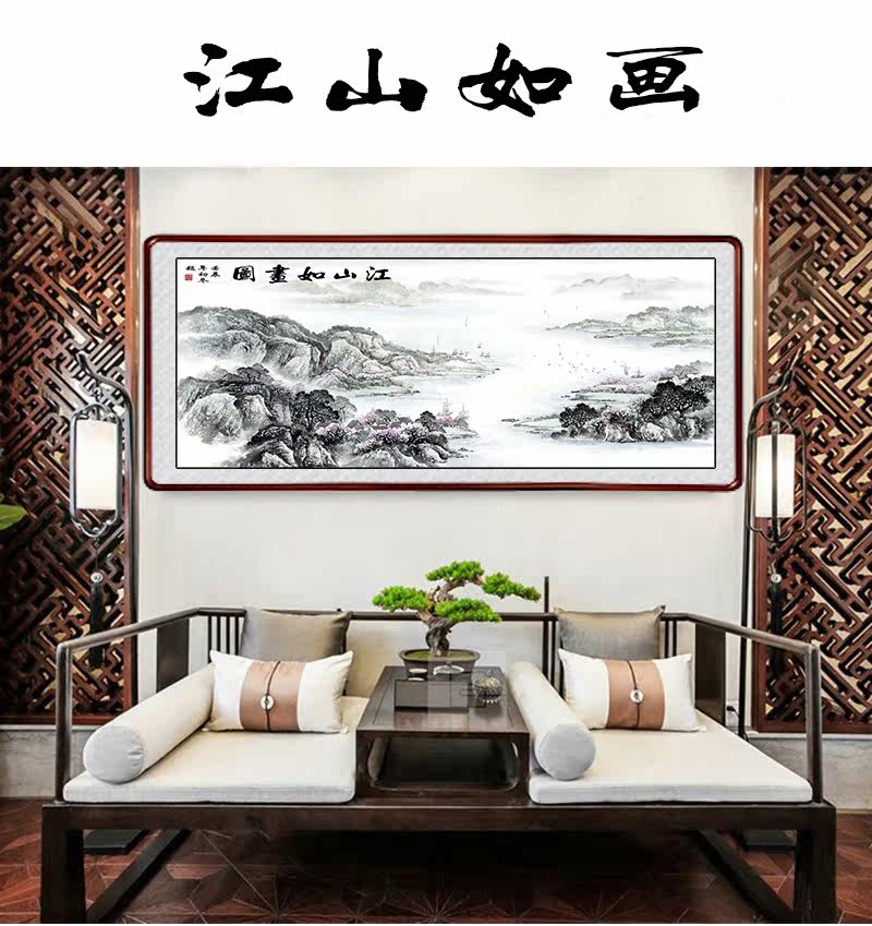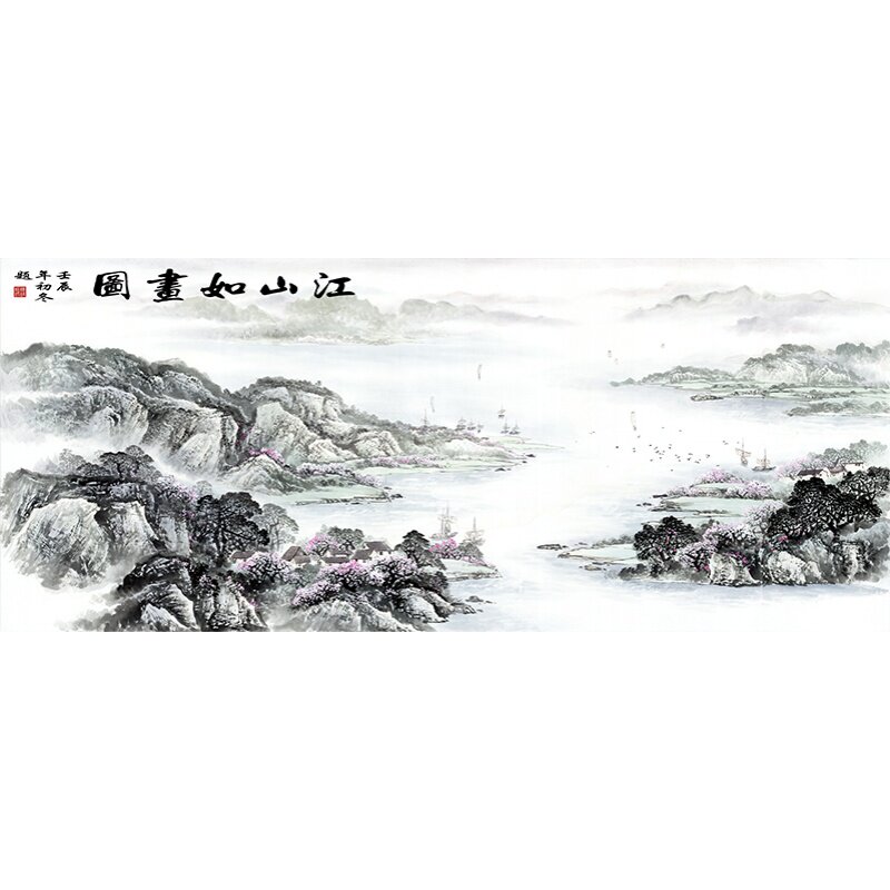GH-175 high definition landscape painting Jiangshan such as painting polyppot basin Hongyun when head flowing water raw fortune and feng shui original picture