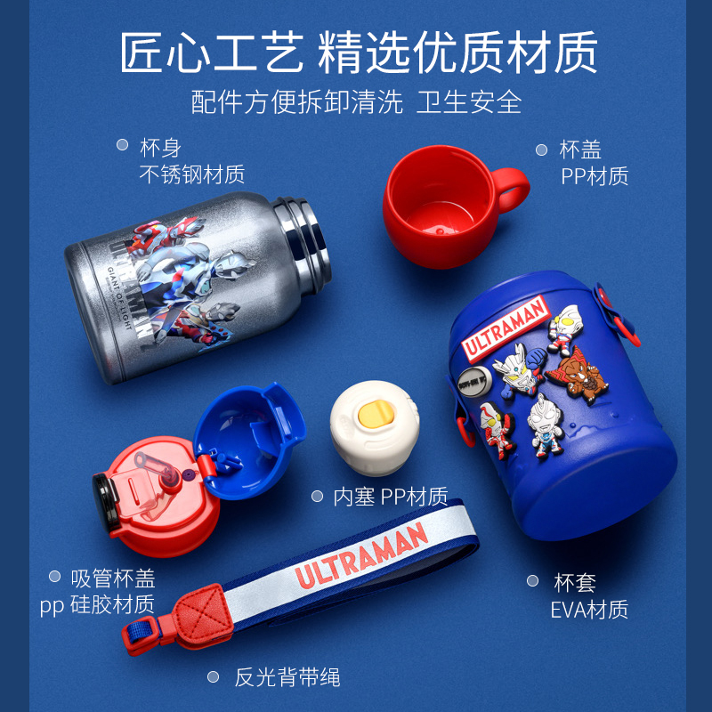 Ultraman children's thermos cup smart kindergarten primary school student water cup boy cartoon kettle large-capacity straw cup