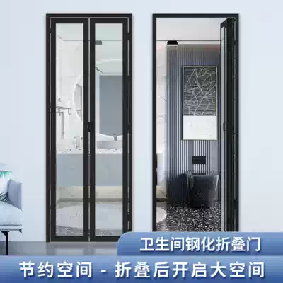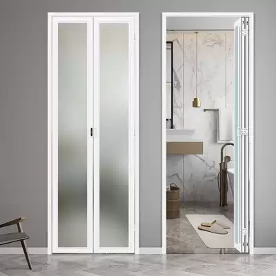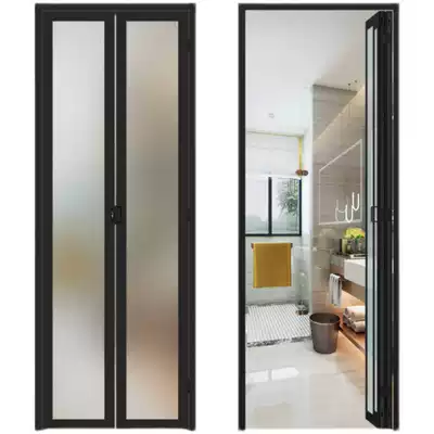 Powder room folding door toilet sliding door aluminum alloy waterproof dry and wet separation without lower rail telescopic simple household