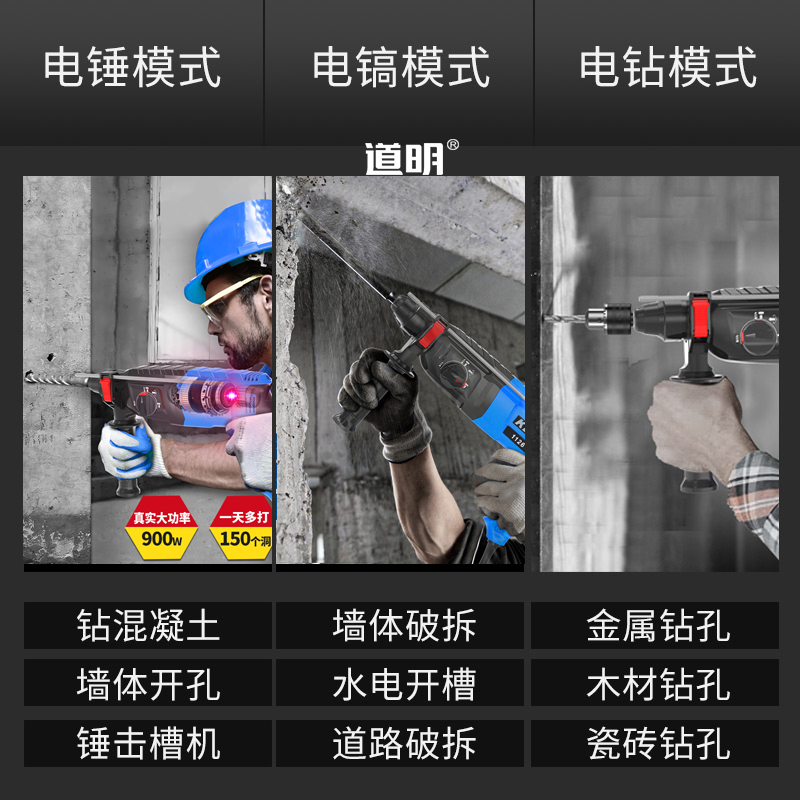 Daumin Industrial Class Three-use light electric hammer drill electric pick electric drill percussion percussion drill concrete drilling and hydropower trench multifunction