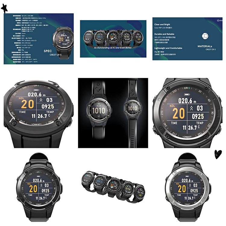 CREST CR5 colour screen diving computer table surface-surface composite outdoor sports heart rate detection satellite positioning