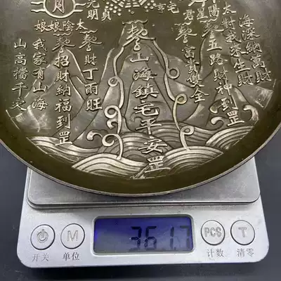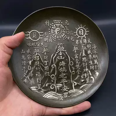 Antique bronze antique old gilt gilt gossip mountain ghost copper plate large plate Shanhai town desktop ornaments with shelves