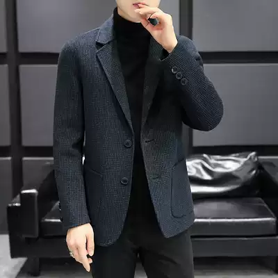 Fugui bird double-sided wool coat men's short Korean trend autumn and winter high-end thousand bird grid suit jacket
