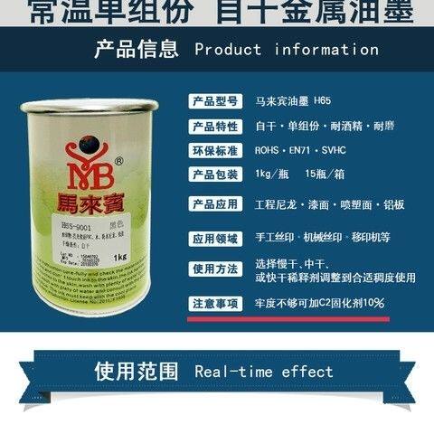 Malay H65 self-dry metal ink web version printed transfer printing PA engineering nylon spray plastic painted finish iron aluminium brass wire imprinting ink