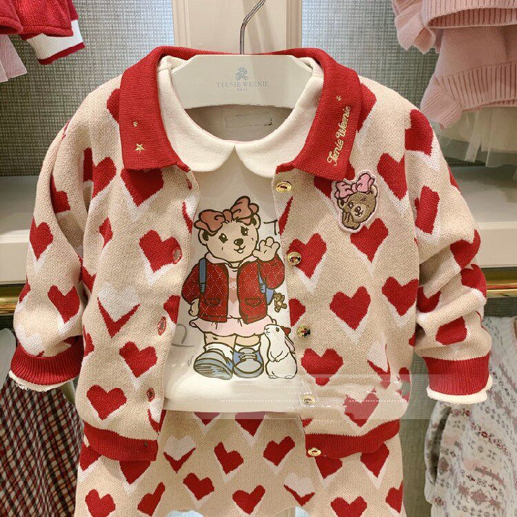 TW Little Bear children's clothing 21 Spring and autumn money girls baby clothes knit cardio-hoodie short dress Two-style suit T0CK211151A