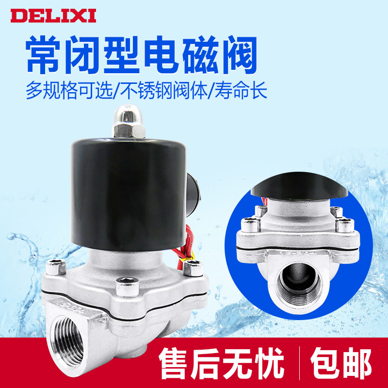Delixi normally closed 304 stainless steel solenoid valve water valve 24V electric control valve switch 220V tap water pipe valve