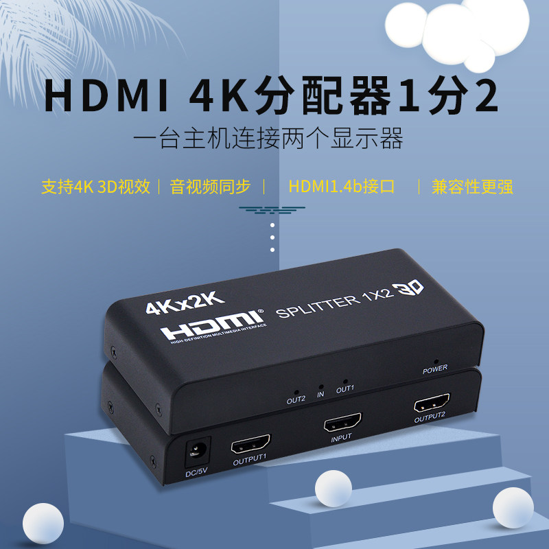 Engineering grade HDMI dispenser 1 in 2 out of high definition 4K Long distance monitoring film same screen display frequency dividing extension cord