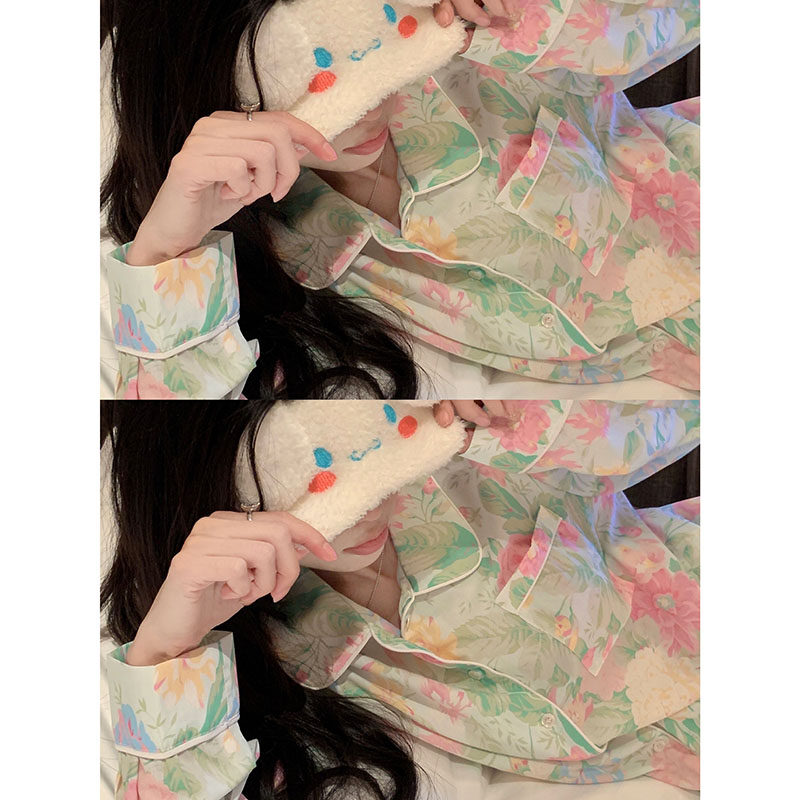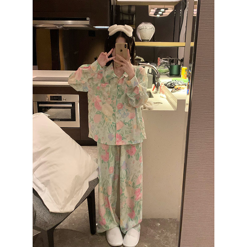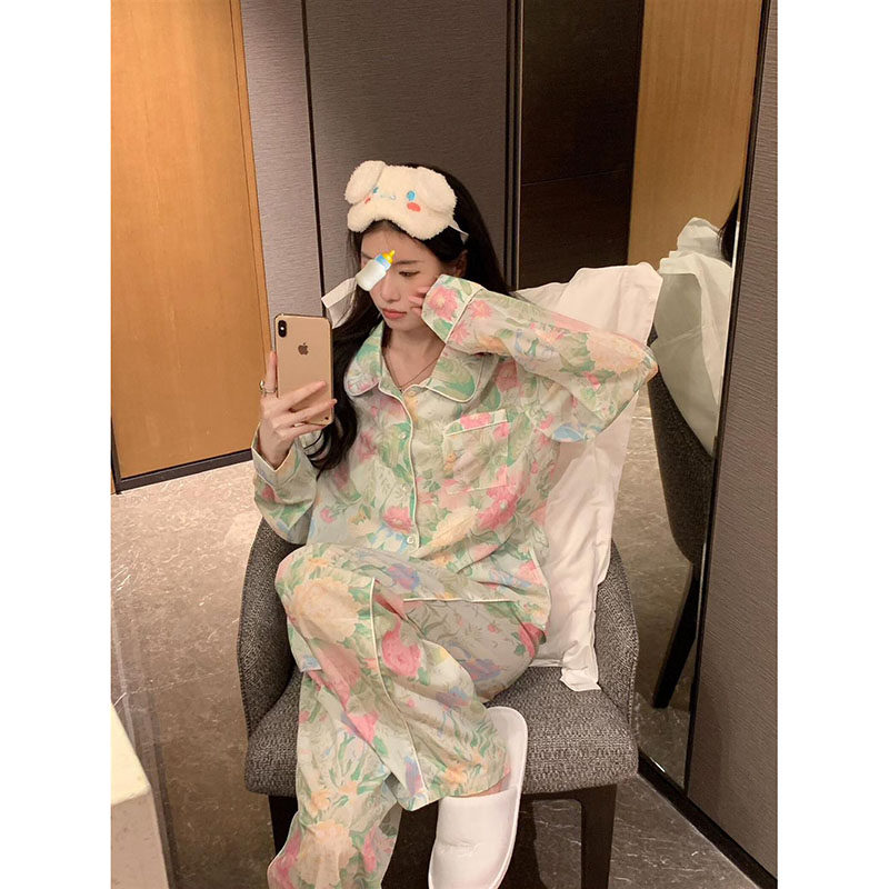 Hit at a glance~Chao Advanced OLOEY Ink Painting Pajamas Women's Advanced Sense Floral Spring and Autumn Suit Home