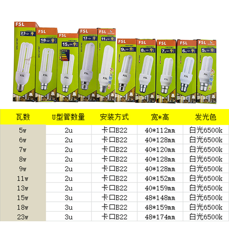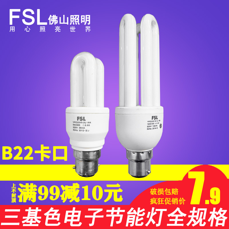 FSL Foshan Lighting B22 Card Power Saving Lamp Plum Ultra-bright Household 2u3u Tri-colored Light Bubble 25w High Power