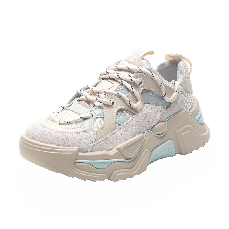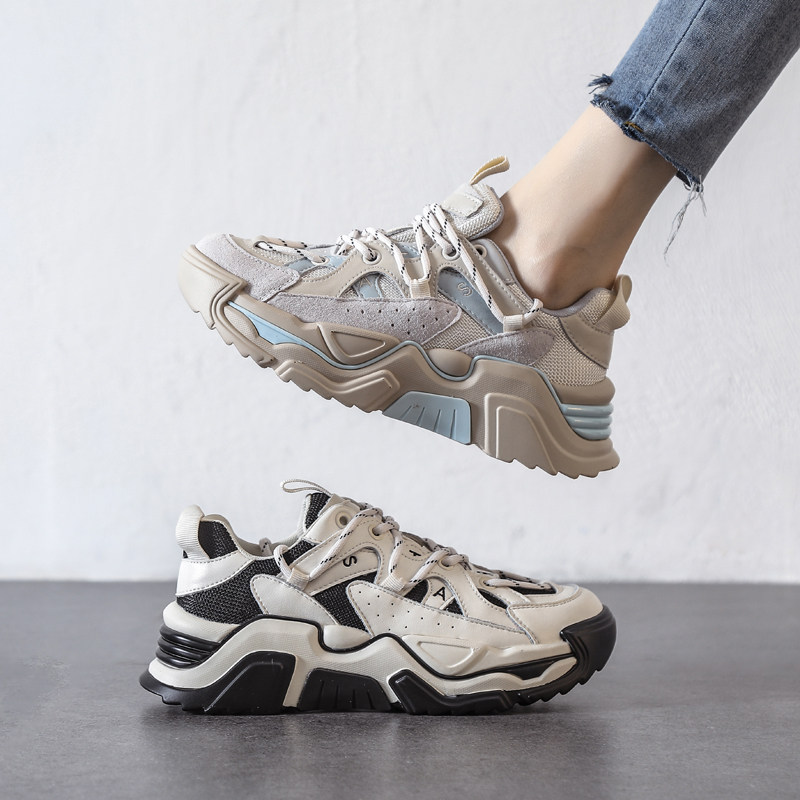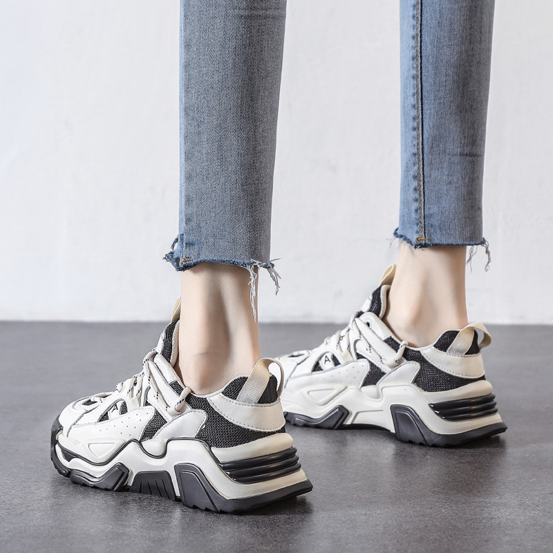 The weather is so sunny today~ The scenery is beautiful everywhere~ New leather breathable casual sneakers with thick bottom net red fried street