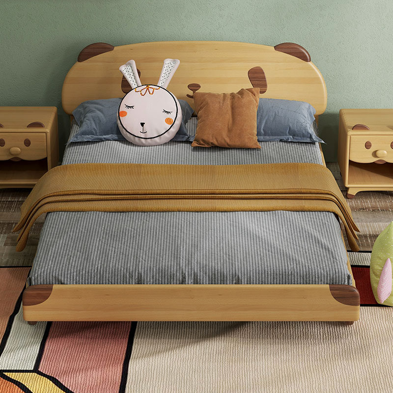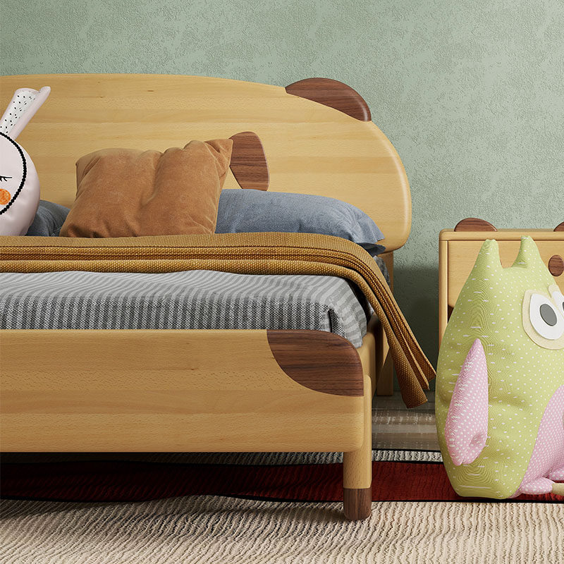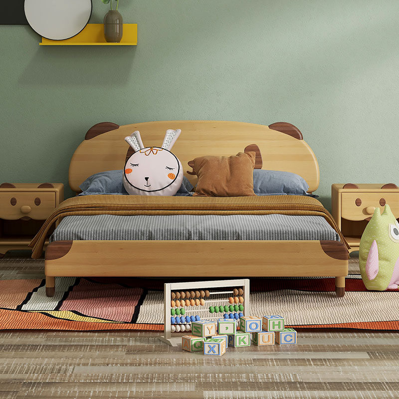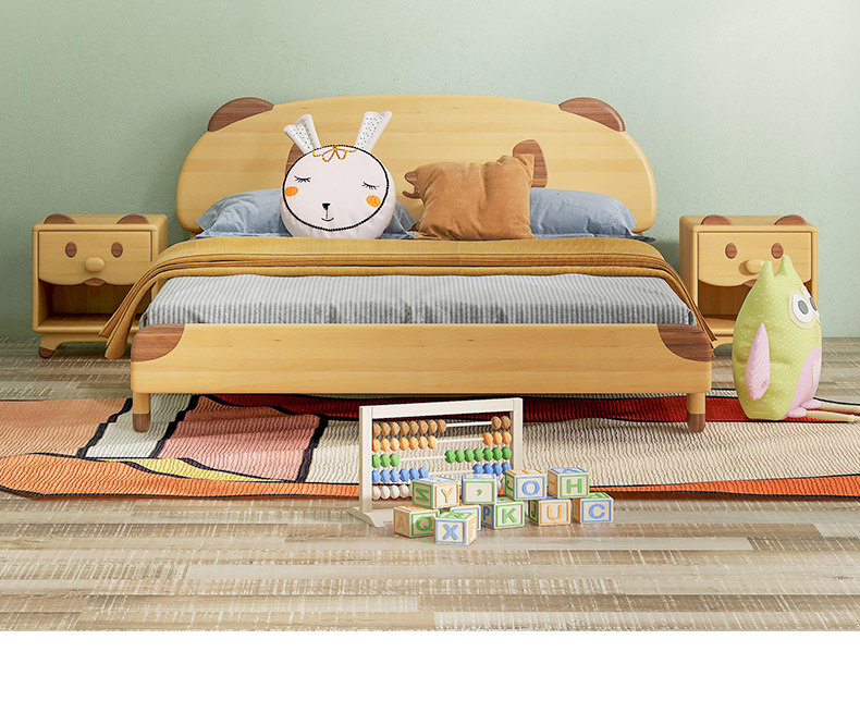 Seven Colors Life Solid Wood Children Beech Wood Nordic Bed Original Wood Color Children's Furniture Bedroom Furniture With Small Bears
