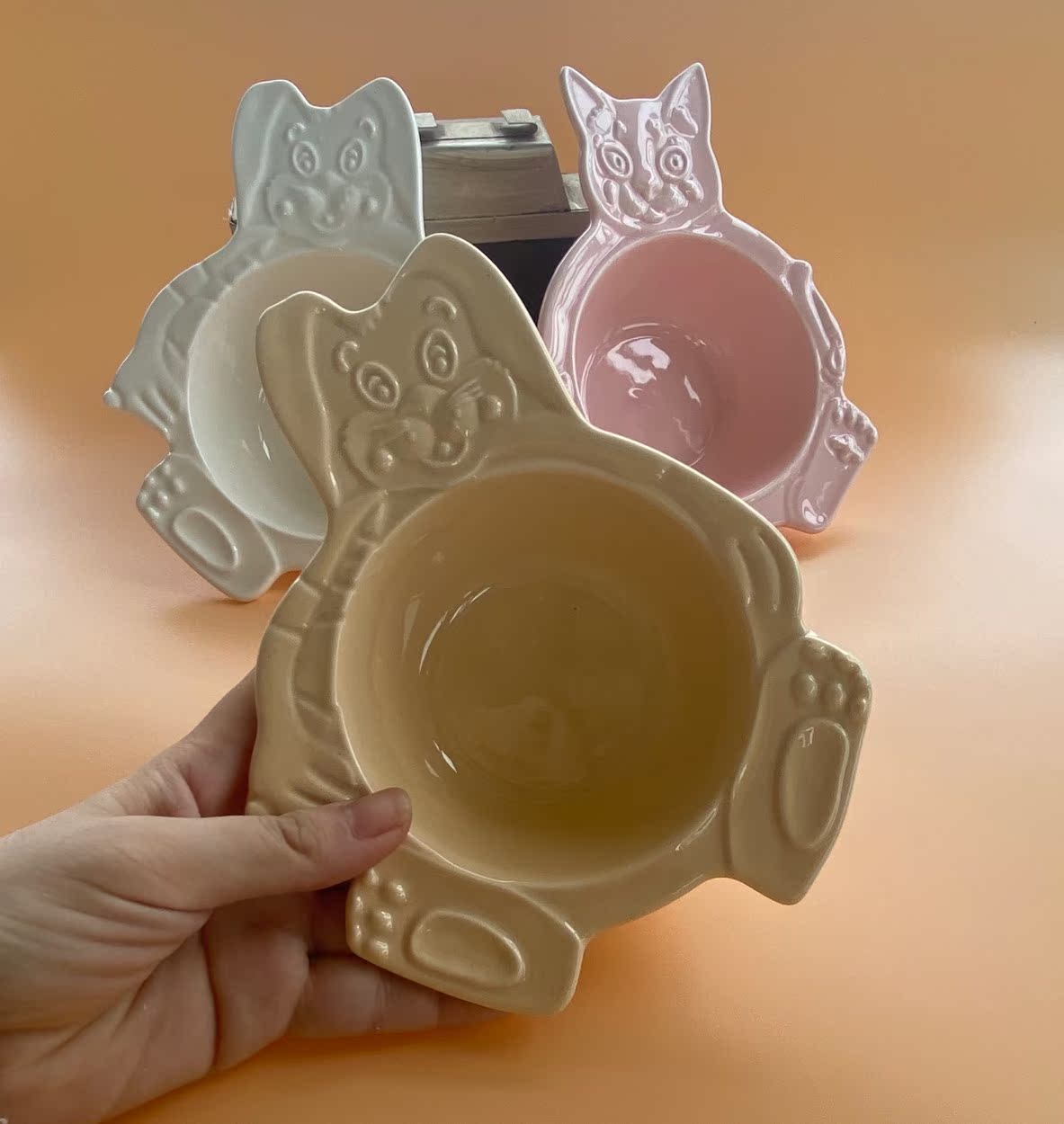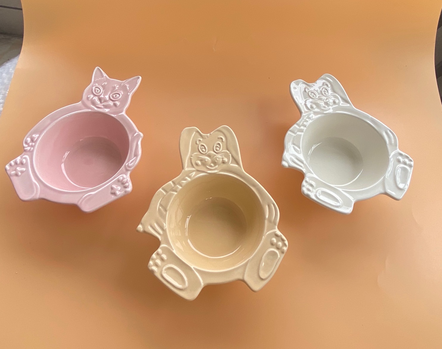 Yellow Rabbit Bowl White Rabbit Bowl Pink Cat Bowl Three Bowls