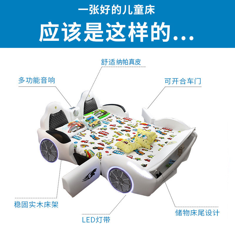 Car bed children boy with guardrail single bed 15m multi-function sports car boy cartoon new racing bed