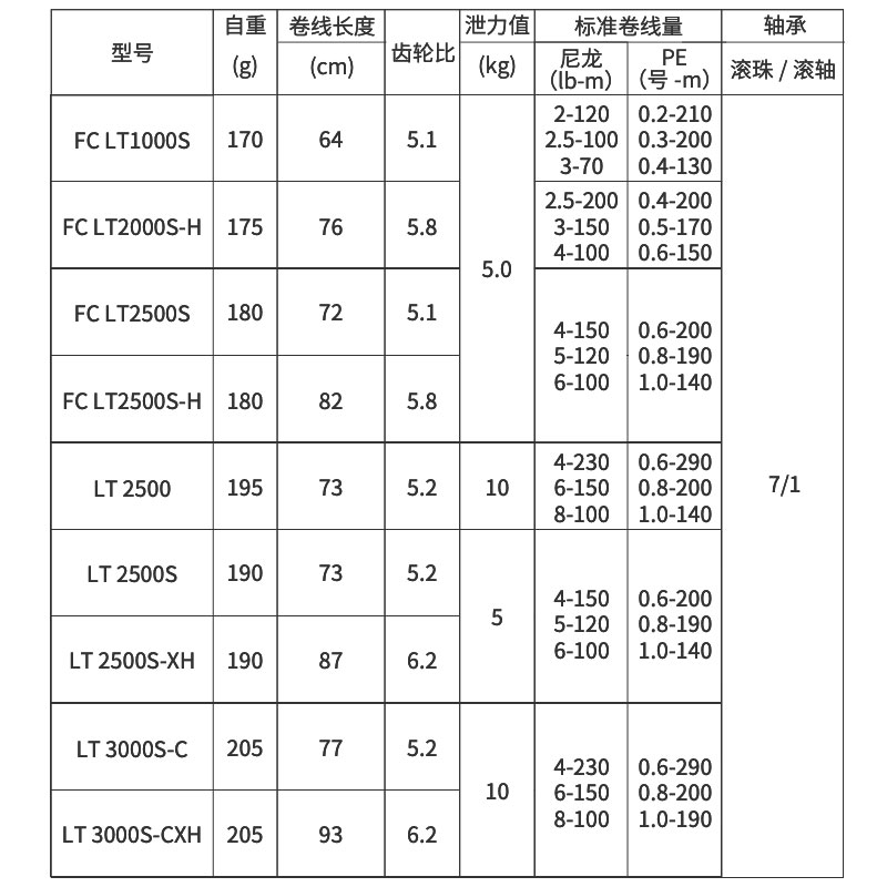 FC-LT-2000S (21 models)FC-LT-2500S (21 models)FC-LT-2500S-XH (21 models)FC-LT-250