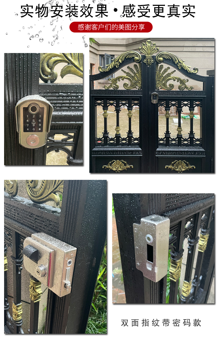 Garden Ic Villa Hollowed-out Iron Art Courtyard Door Lock Double Sided Waterproof Fingerprint Lock Outdoor Code Lock Swipe Remote lock