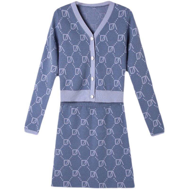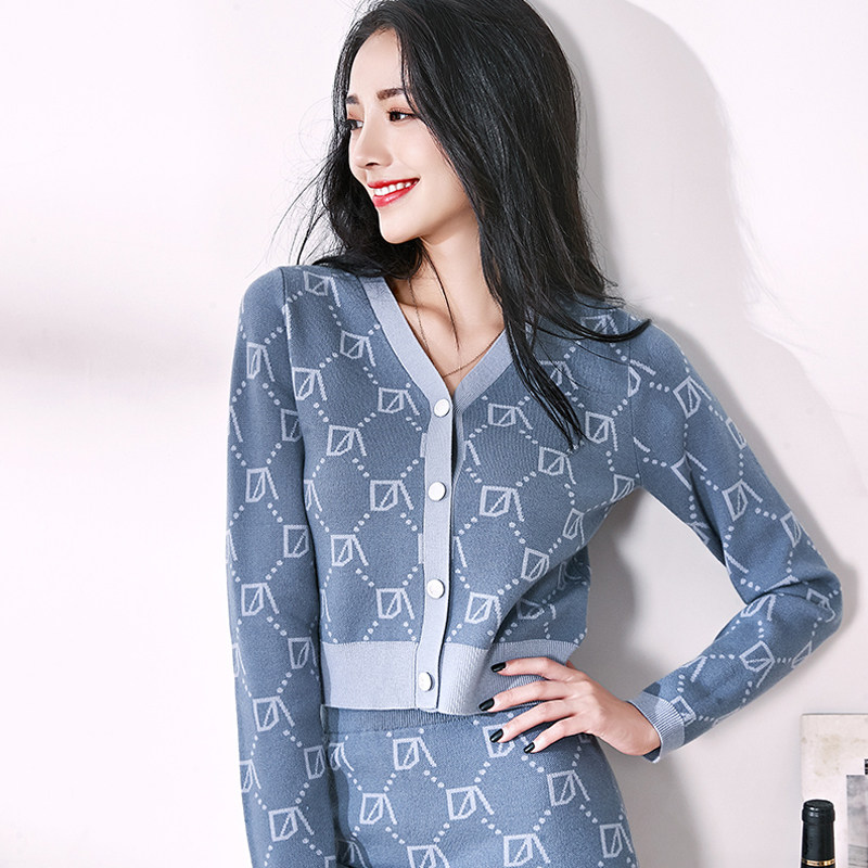 MENTMAR small fragrance short skirt suit female 2021 autumn fashion knitted cardigan package hip skirt two-piece winter suit