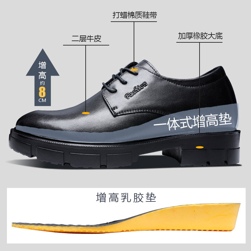 Invisible heightening leather shoes men's real leather business positive dress Inn trend thick bottom inner heightening 8cm groom wedding men's shoes