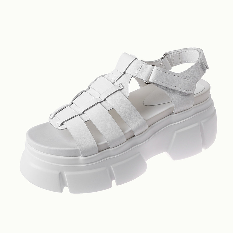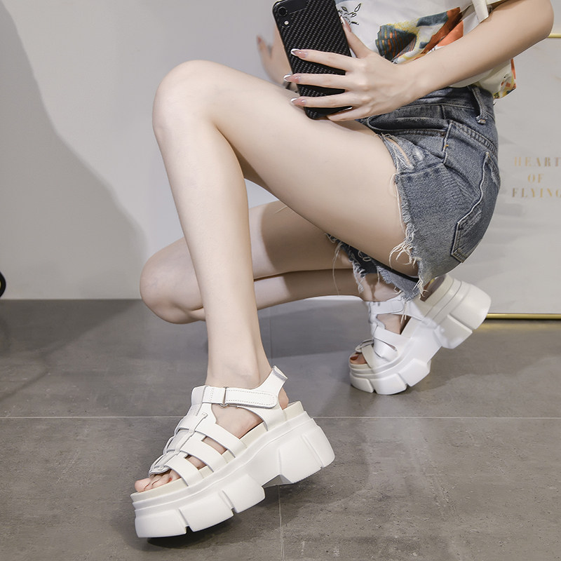 European station women's shoes 2022 summer new thick-soled hollow sponge cake Roman shoes Velcro high-heeled sandals European goods