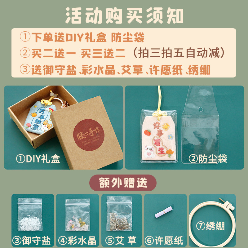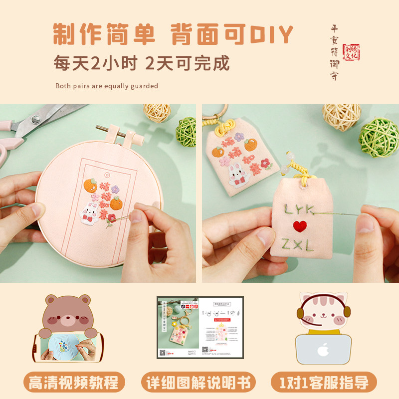 Ping An Fu Embroidery Handmade DIY Material Package Ping An Fu Yu Shou Beginner Self-embroidered Fabric Art for Boyfriend Gifts