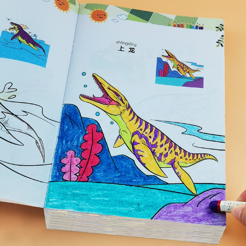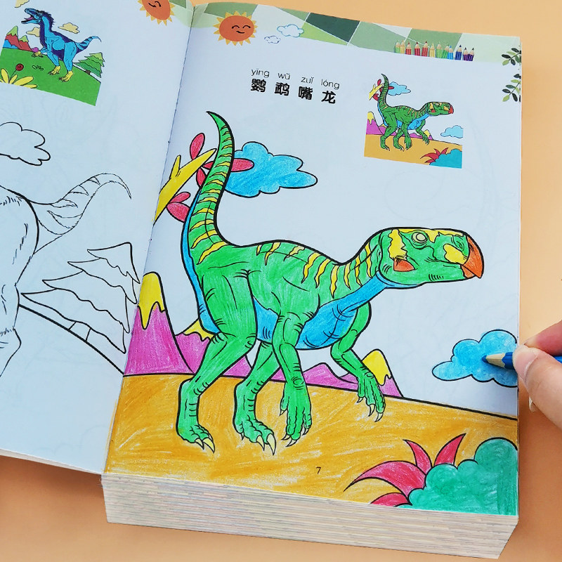 Dinosaur coated this 3-6-8-10-year-old child Fill color Ben primary school children Painting Book Graffiti 4-5-year-old Painting Book