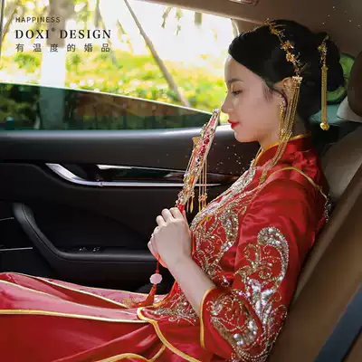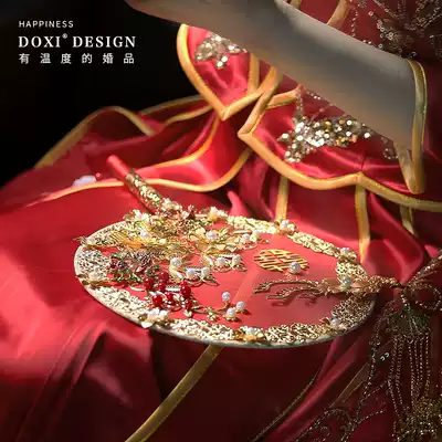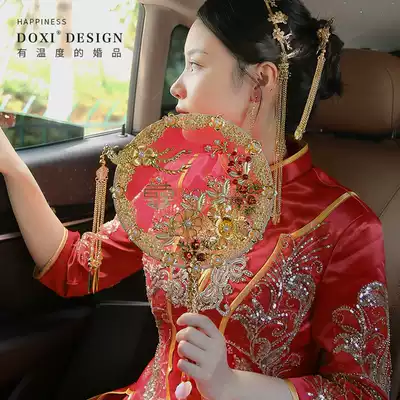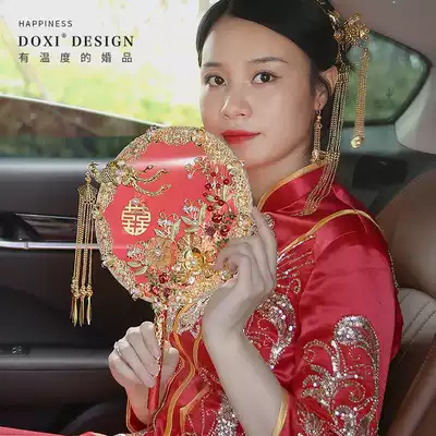 Wedding bride group fan Wedding ceremony Xiuhe fan Chinese wedding ancient style red festive Pu fan handmade happy fan female