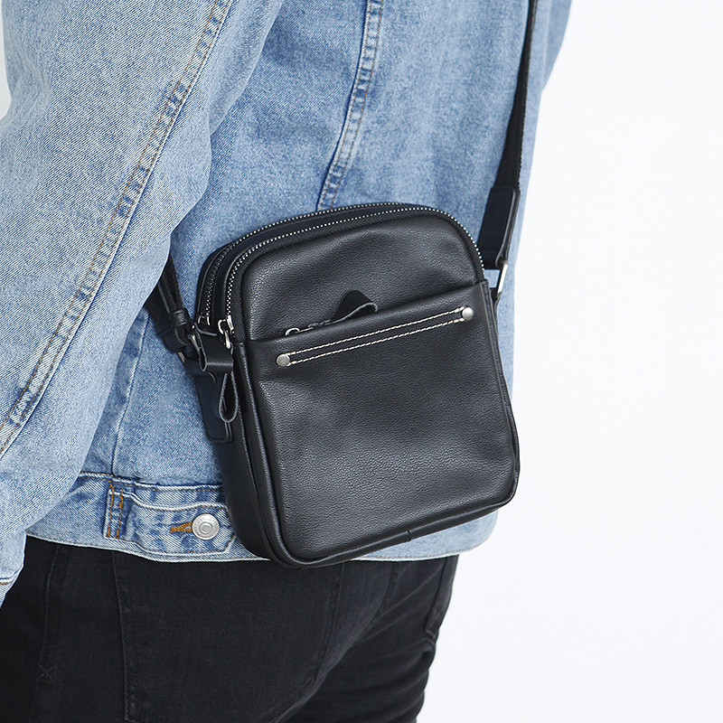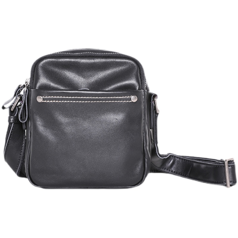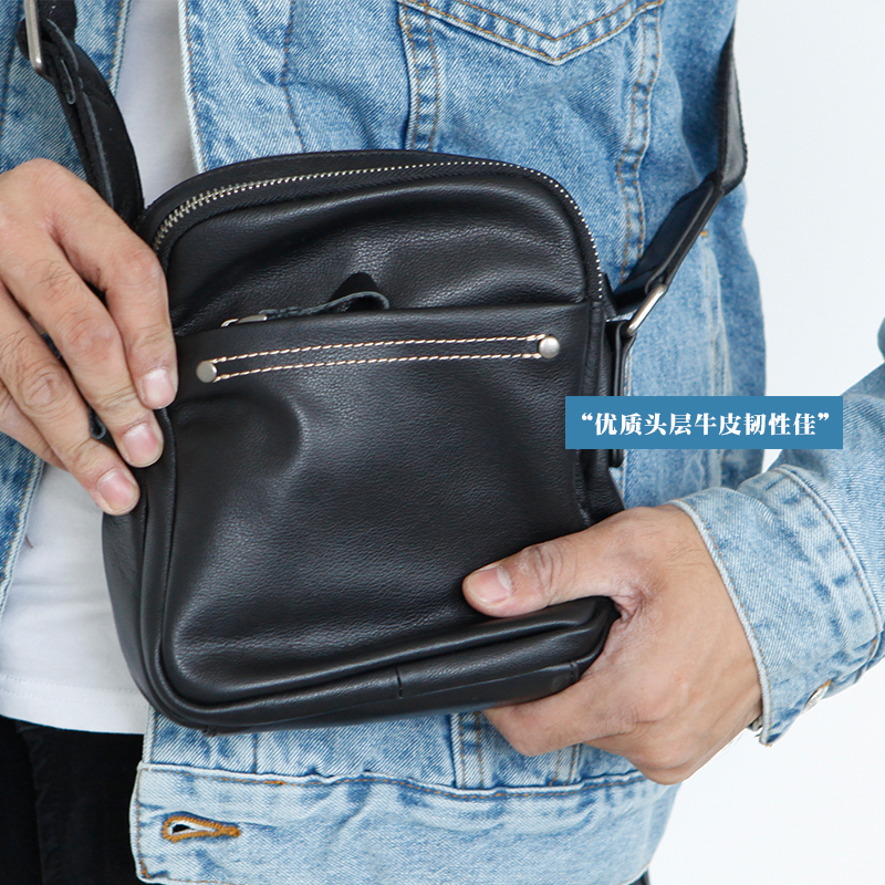 Blue Leather Men's Single Shoulder Bag Genuine Leather Skew Satchel Trendy Fashion Bull Leather Men's Bag Day Ensemble Casual Harp small satchel