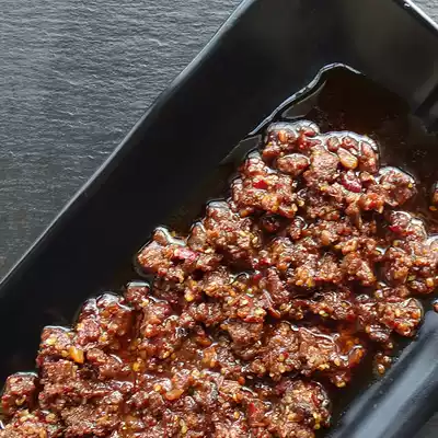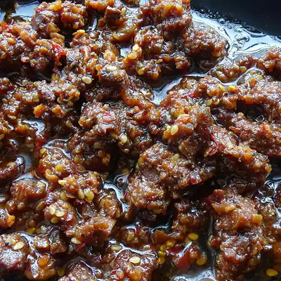 Pepper rapeseed oil sliced beef and mushrooms and soy sauce peanut sesame garlic ginger Salt monosodium glutamate to enhance the flavor of granulated sugar and sticky rice starch spices