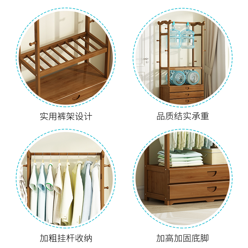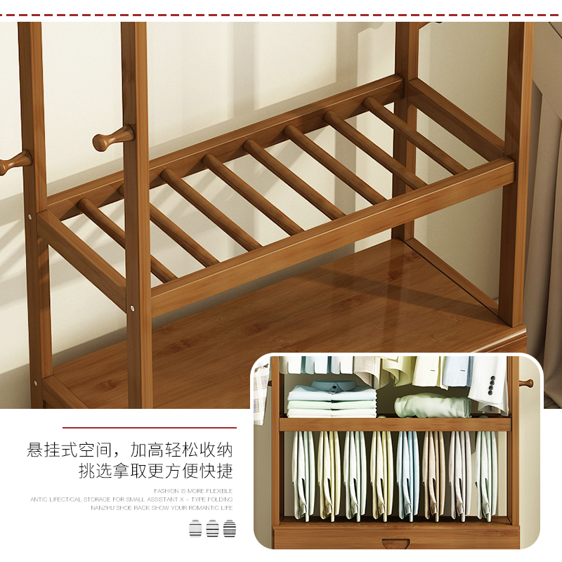 Clothes hanger Home hanging clothes Nan bamboo shelve floor Home bedroom Multi-functional Easy clothes hat rack clothes containing layer rack