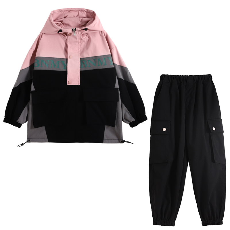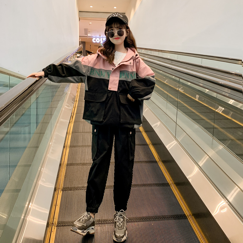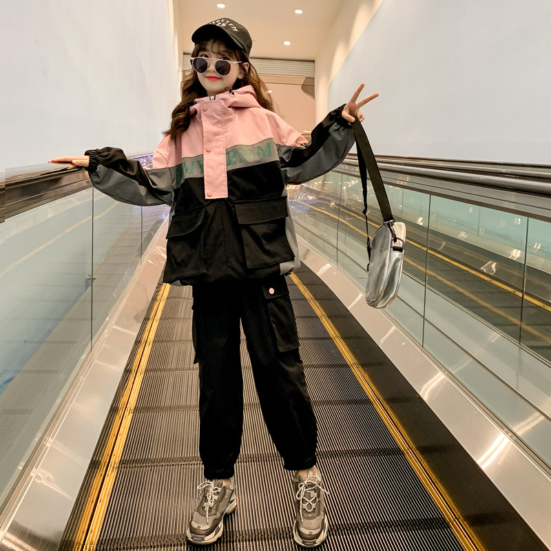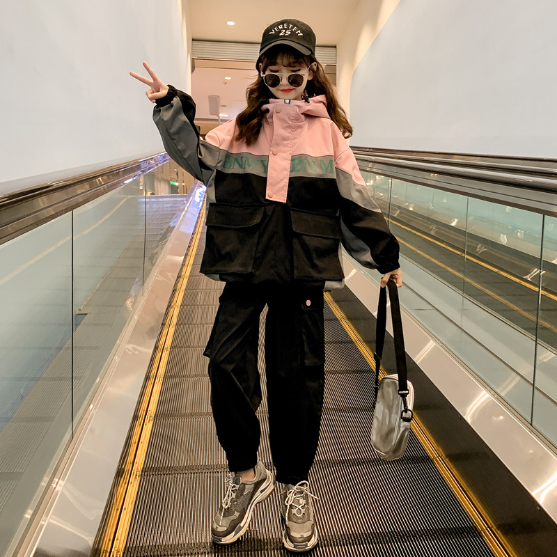 Girl Spring Clothing Suit 2022 New Foreign Pie Children Spring Autumn Nets Red Trendy Great Boy Tooling Sports Two Suits