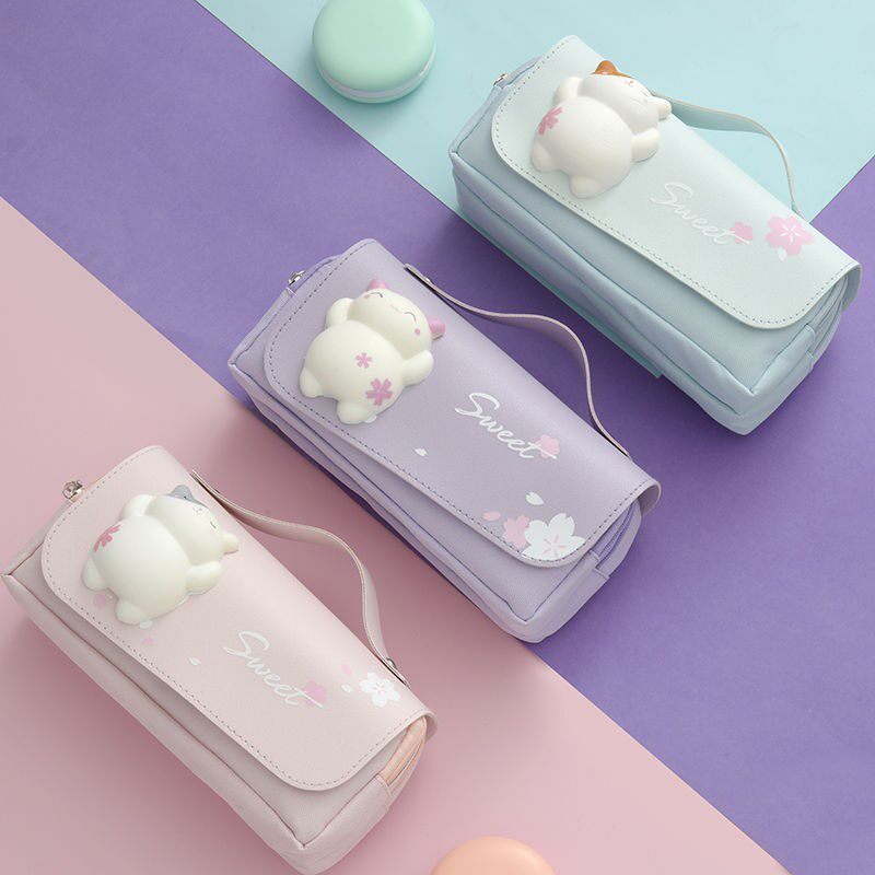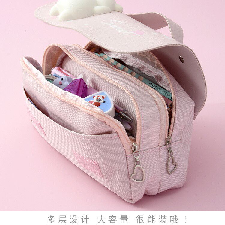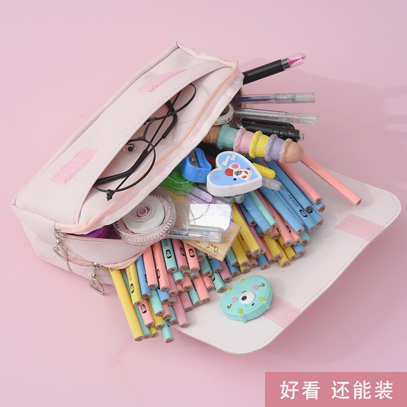 Net red pencil bag primary school girls large-capacity stationery box ins pencil box junior and high school students double-layer canvas stationery bag