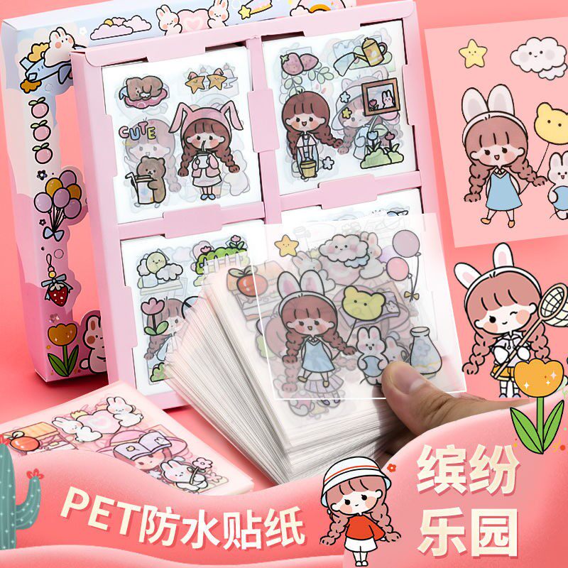 PET stickers waterproof and cut to Fun Paradise 100 sheets of PET stickers waterproof and cut cream Rabbit diary 100PET stickers waterproof and cut free for small puff 100 sheets of PET stickers anti-cut