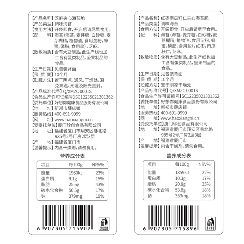 Sesame Sandwich Sea Moss Crisp 20g * 4 Bags Red Date Pumpkin Seeds Jen Sandwich Sea Moss Crisp 20g * 4 Bags Sesame Sea Moss 2 Bags Red Date Pumpkin 2 Bags