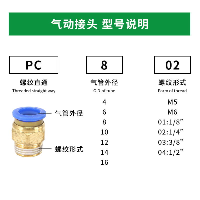 Pneumatic quick-insertion trachea fast high-pressure hose connector with thread straight through PC4-M5 6 8 12-01 02-03