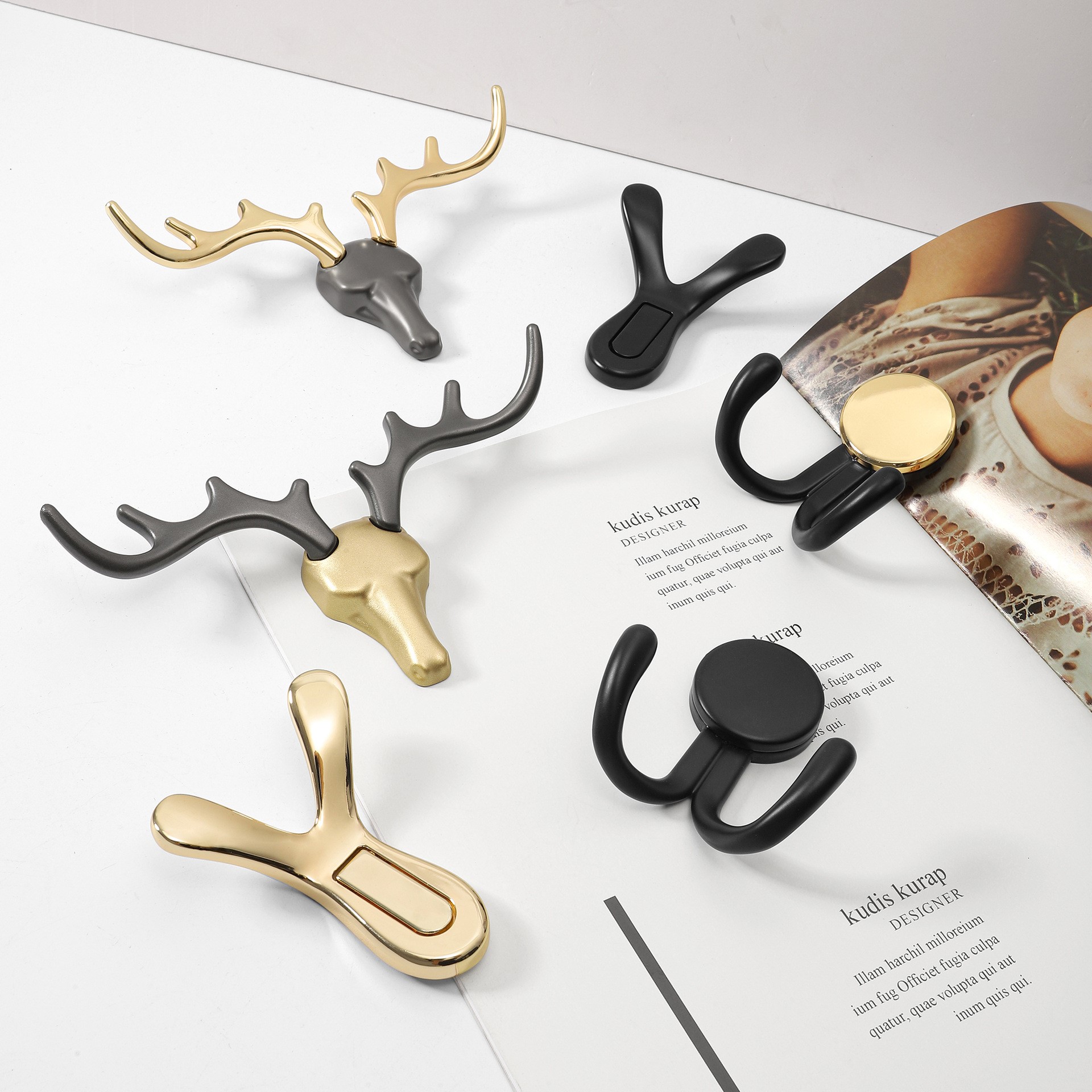 Modern minimalist shoe cabinet wardrobe hangers Nordic Hyun Off Antlers Corner Hanging Clothes Hook Single Metal Black Hanging Clothes Fitting Room
