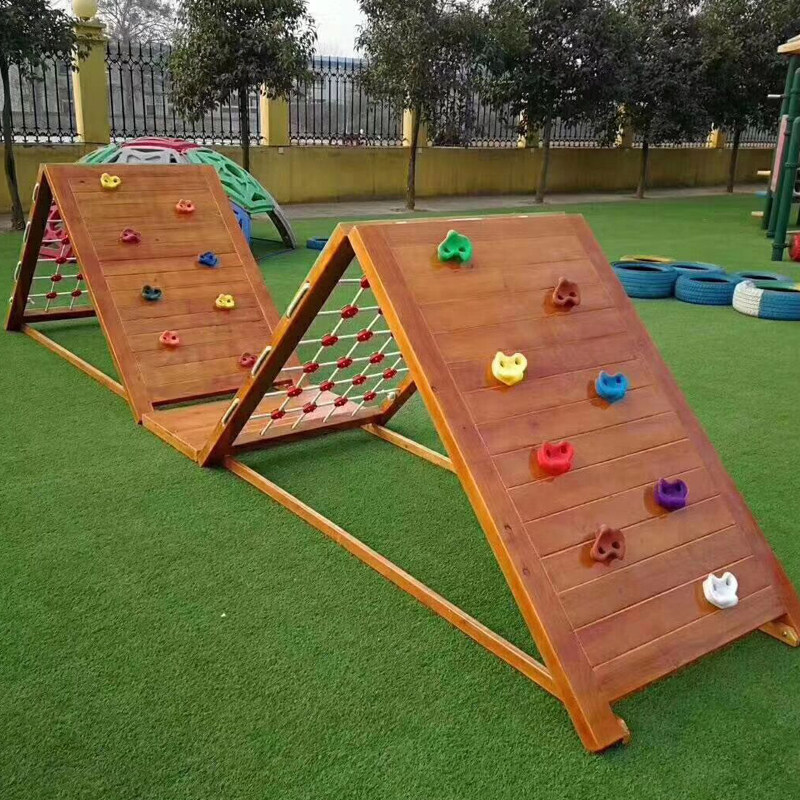 Kindergarten Children Outdoor Wooden Climbing Racks Expand Large Combined Yellow Flower Pears Drilling Holes swing Swing Bridge Toys