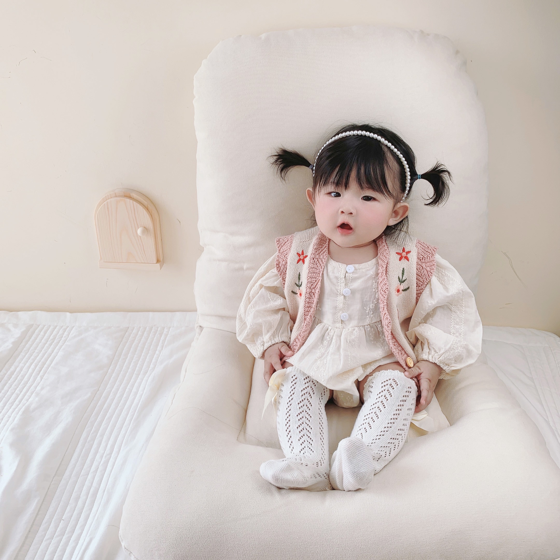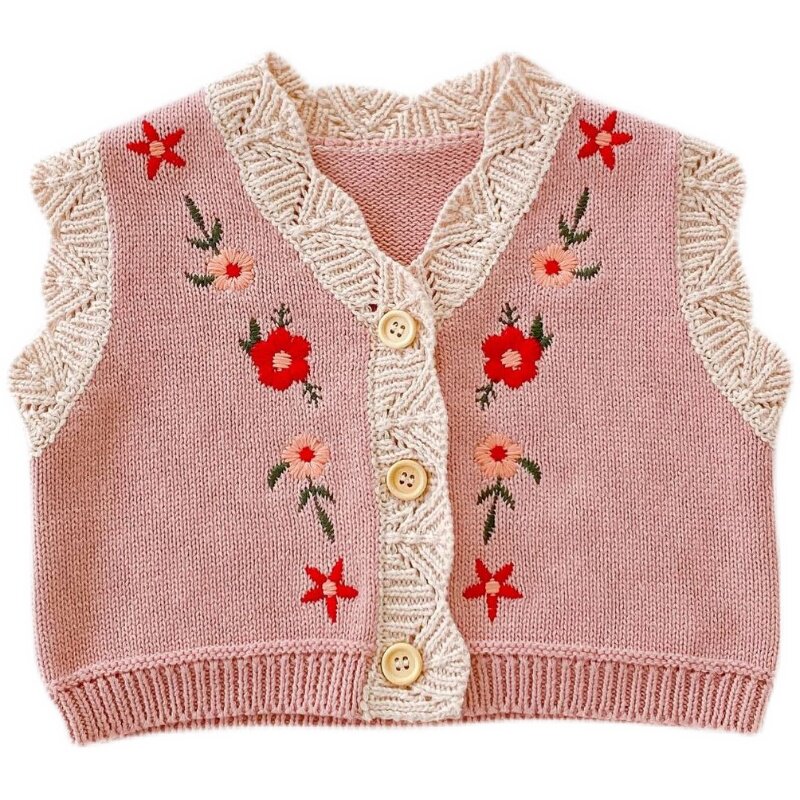 2022 Spring autumn season female baby 100 hitch cardio-cotton knitted sweatshirt baby 0-2 years old embroidered V collar horse chia jacket